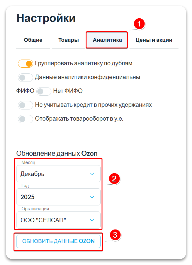 Баллы Ozon рассчитываются на основе месячного позаказного отчёта о реализации за тот же период, за который у вас загружена аналитика по API.