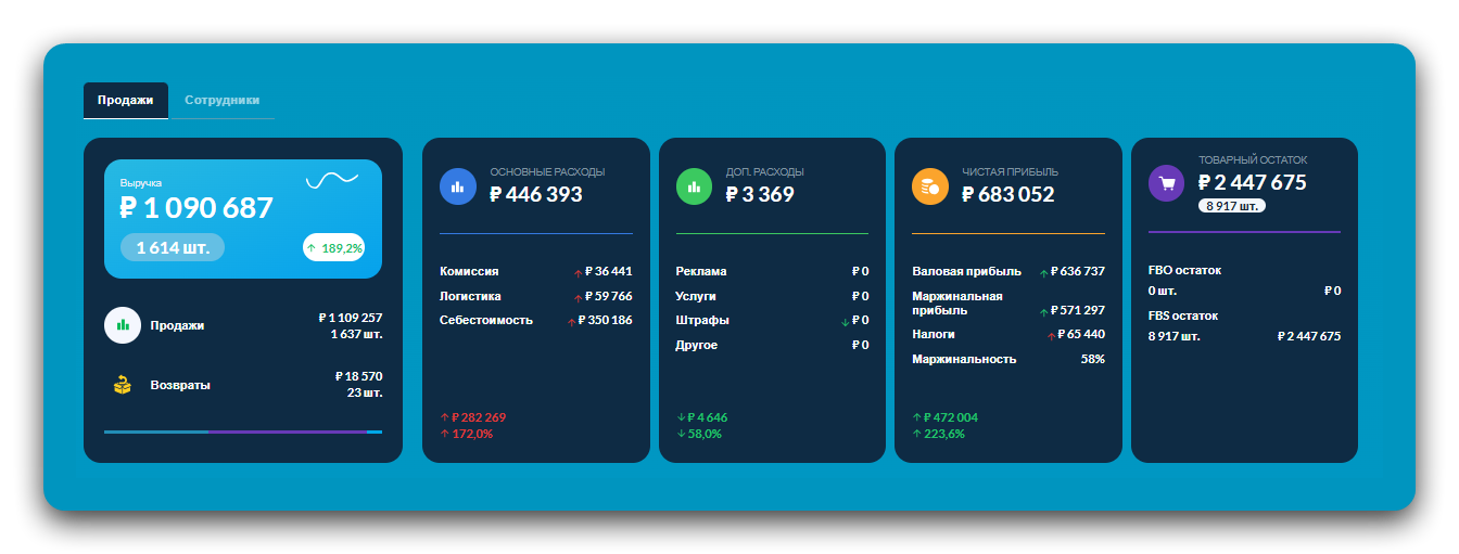 На вкладке «Продажи» появятся показатели: