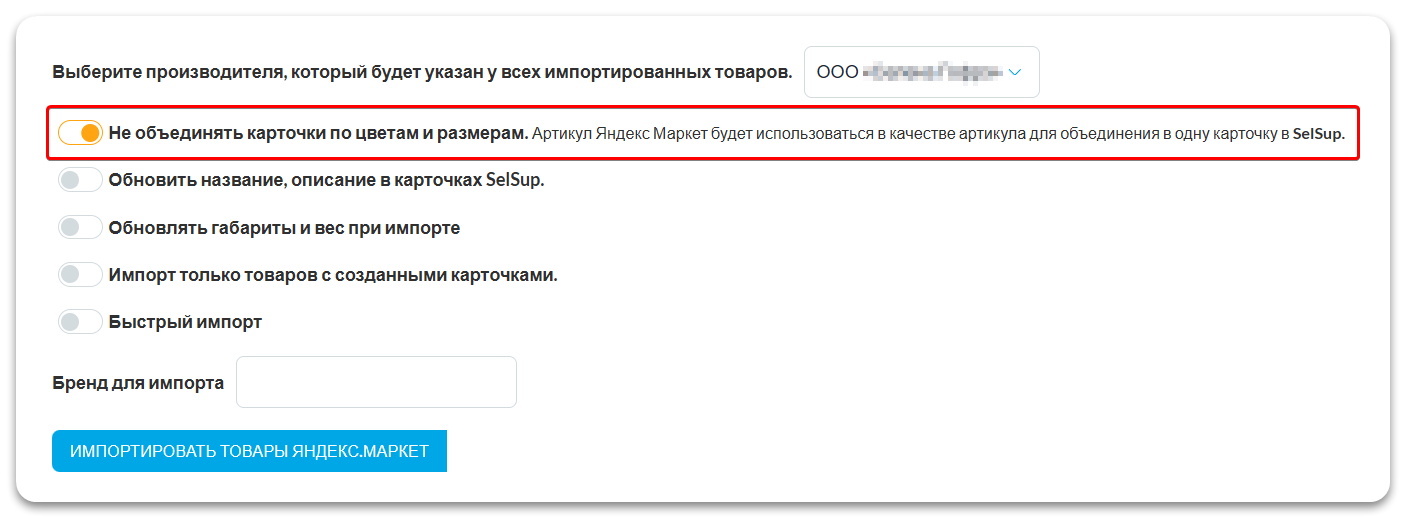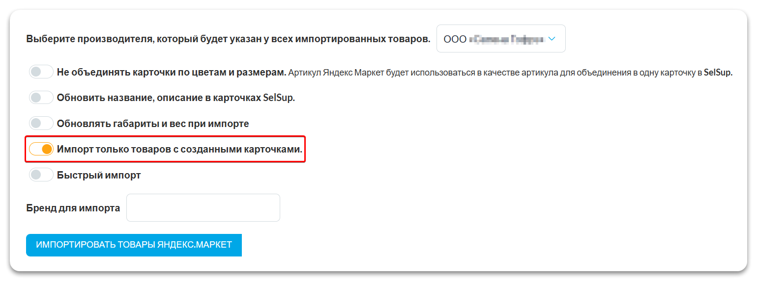При включении данного переключателя SelSup будет импортировать только те товары, которые имеют полностью готовые карточки и готовы к продаже в Яндекс.Маркете.
