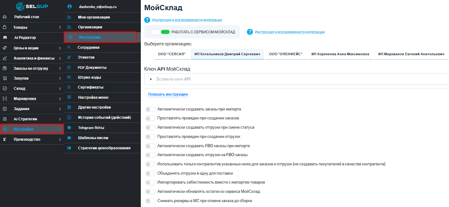 В этой статье расскажем вам, как настроить интеграцию с сервисом МойСклад, какие особенности и возможности есть при интеграции SelSup с МойСклад.