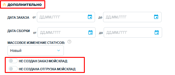 Внимание! Перед включением тумблера необходимо сначала проверить, все ли заказы импортировались в МойСклад. Если нет, то необходимо сначала досоздать заказы в МойСклад. Подробнее о том, как досоздать заказы в МойСклад, рассказали в данной статье.