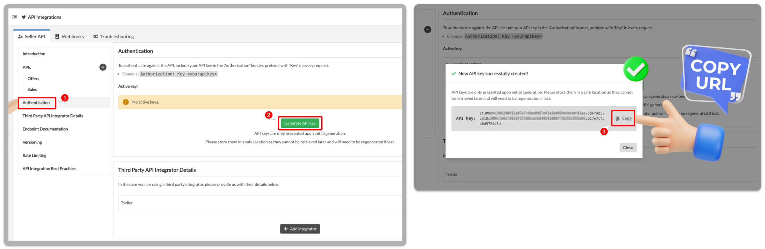 - Нажмите Generate API Key, если ключ ещё не создан.
