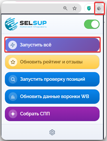 Функция «Запустить все» упрощает эту работу: она помогает быстрее собирать нужные данные через расширение и поддерживать отчёты SelSup в актуальном состоянии.