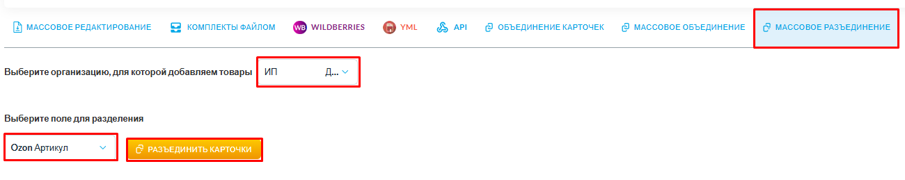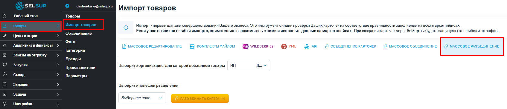 Теперь вы можете легко разделять объединенные карточки товаров и работать с каждой моделью или цветом отдельно для более эффективного управления вашим ассортиментом.