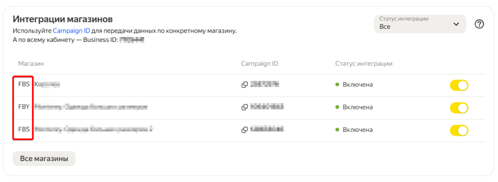 Для каждой схемы работы в Яндекс Маркете, FBS, FBO (также известная как FBY) и DBS, используется отдельный магазин. Для каждого такого магазина в SelSup нужна отдельная интеграция.
