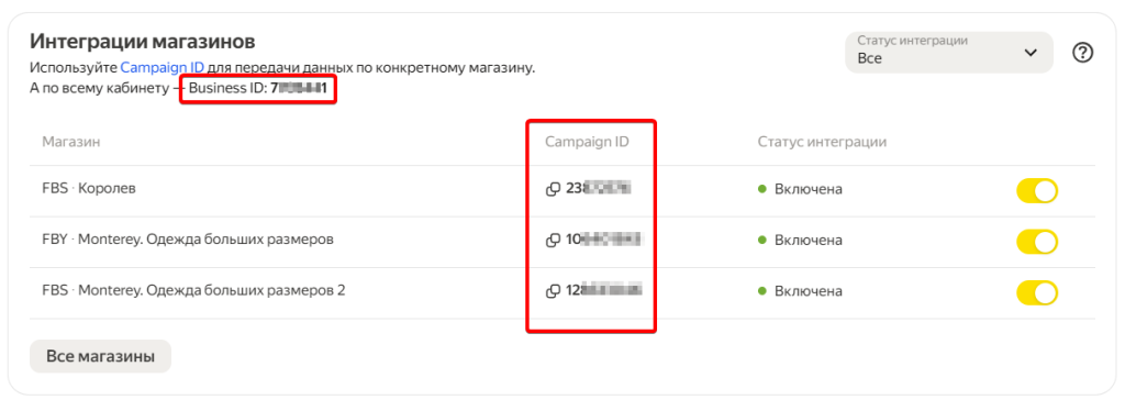 Важно выбрать магазин с campaign ID именно от нужного магазина и запомнить его схему работы.