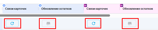 Кнопка "Обновление остатков" с логотипом маркетплейса - обновляет остатки товаров в SelSup со складов маркетплейсов (FBO).