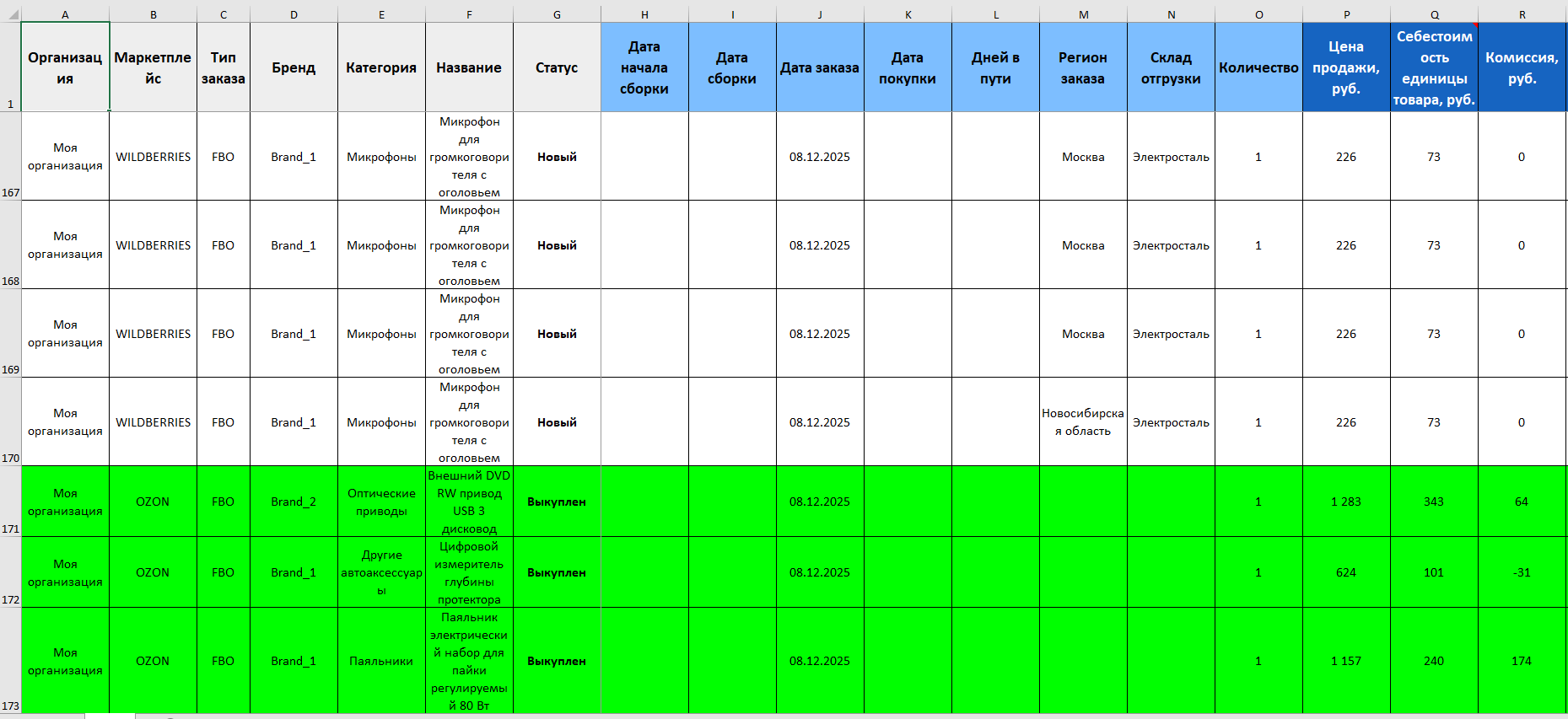 - на каком маркетплейсе был сделан заказ;