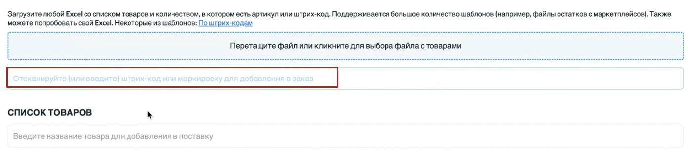 2. Если товар еще не промаркирован и Вы получаете маркировку при создании отгрузки на склад маркетплейса: