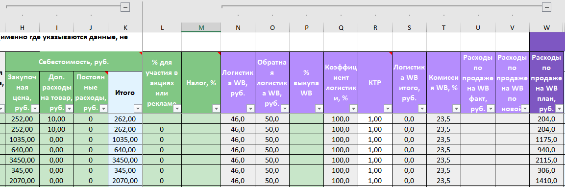 Расходы на рекламу: Если вы продвигаете товар (например, на WB или Ozon), заложите планируемый или средний процент расходов на рекламные кампании.