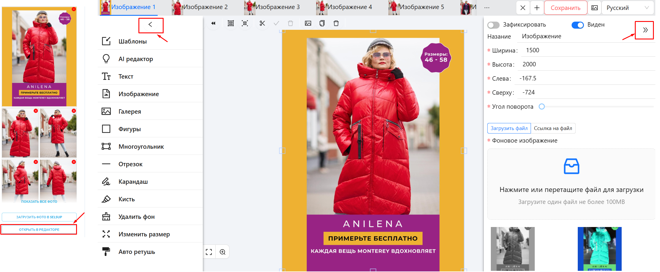 Наш новый фоторедактор — это мощный и при этом удобный инструмент, который станет вашим надежным помощником в создании продающих изображений. Он сочетает в себе скорость и магию ИИ, гибкость профессиональных настроек и уникальную функцию предпросмотра для маркетплейсов. Теперь вам не нужны дорогие подписки на сторонние сервисы — всё в одном месте, прямо в SelSup!