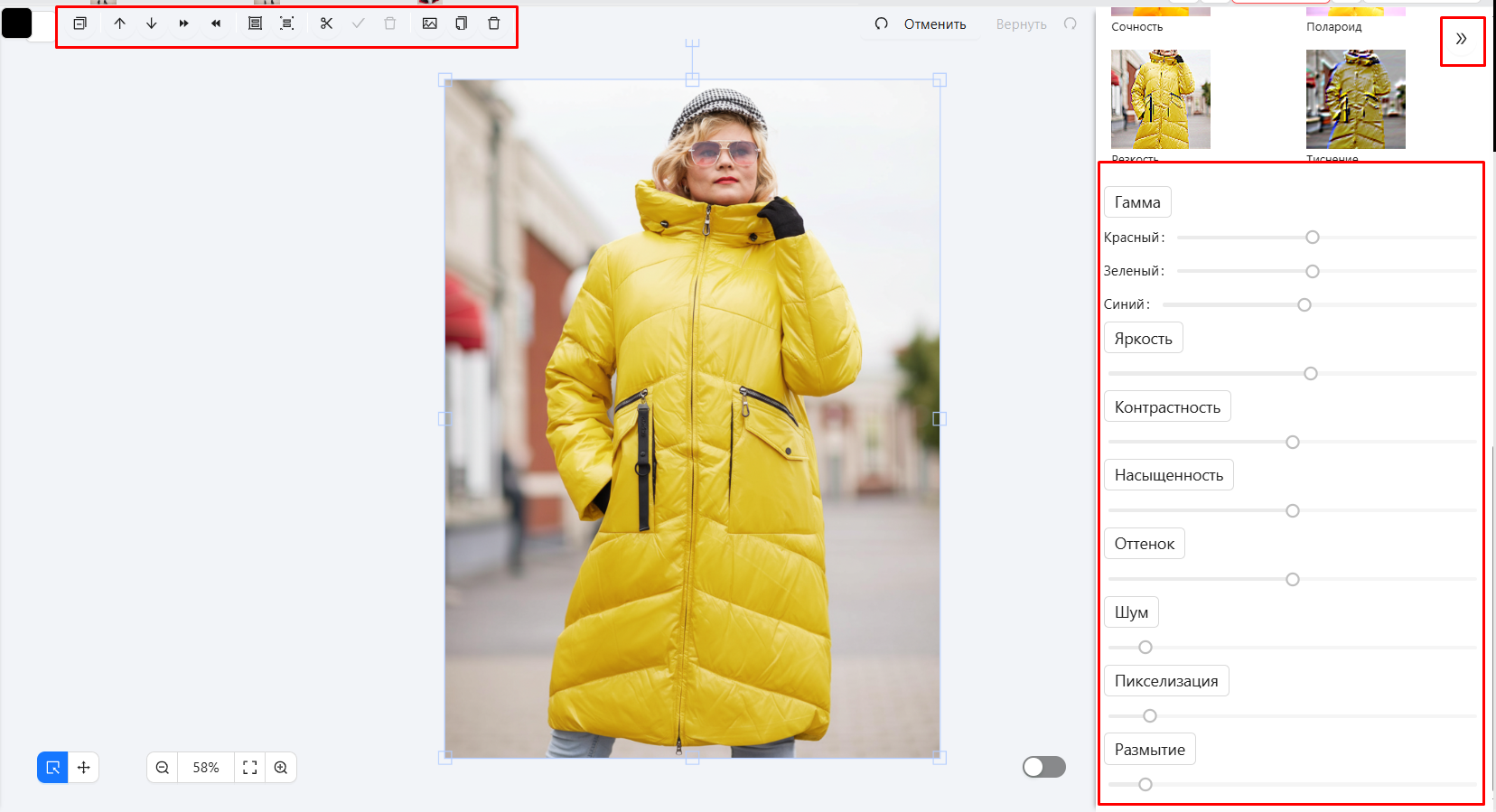 Мы не будем подробно останавливаться на каждой кнопке — базовые инструменты вроде кадрирования, работы со слоями, добавления текста и фигур интуитивно понятны и похожи на те, что вы видели в других редакторах. Лучше покажем их в действии в нашем видео-обзоре. Мы же хотим рассказать о том, что действительно выделяет наш редактор.