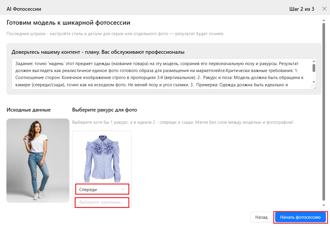 при необходимости добавьте индивидуальный промт — описание требований к конкретному фото (например, поза, стиль, эмоция).