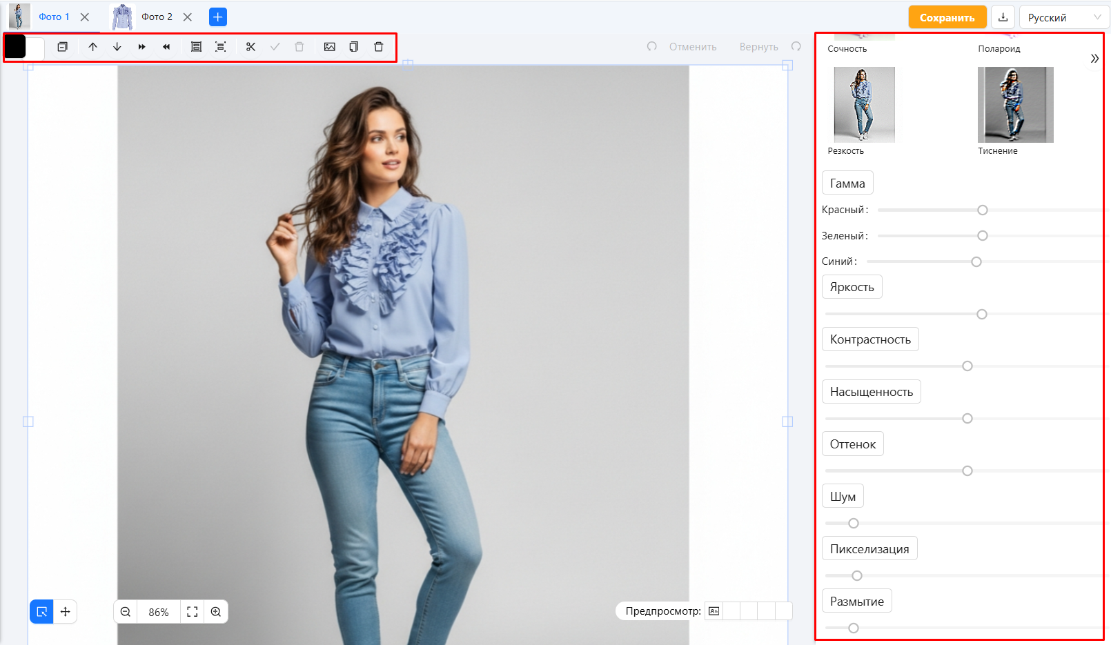 В этом разделе собраны дополнительные инструменты, которые можно использовать для обработки и доработки изображений перед сохранением в карточку товара.