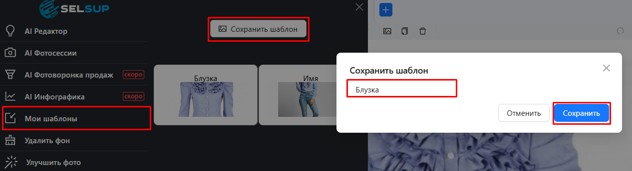 Шаг 3. Укажите название шаблона и нажмите «Сохранить». Выбранное изображение будет сохранено во вкладке «Мои шаблоны».
