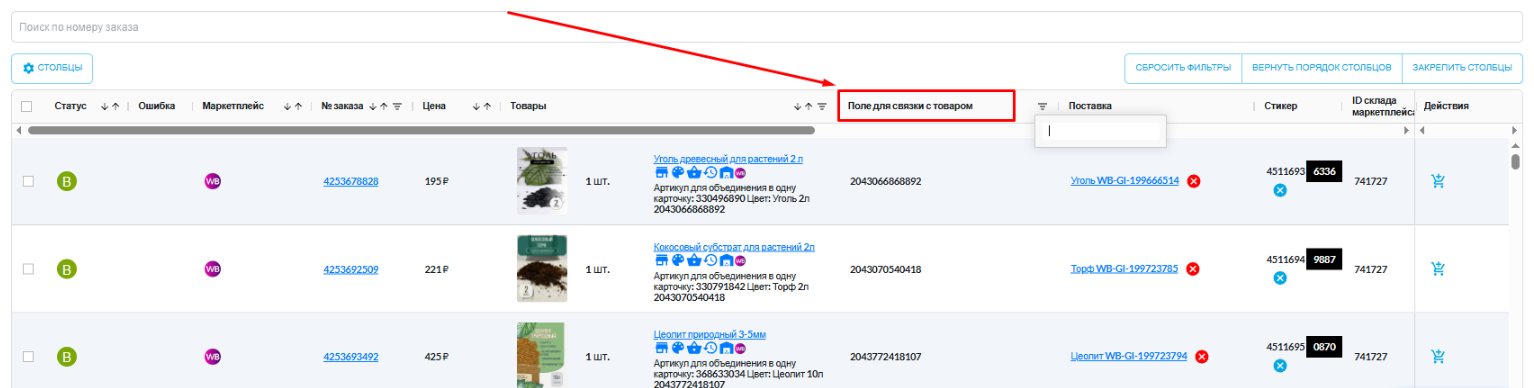 Фильтр «Поле для связки с товаром» — в таблице заказов фильтрация работает только по следующим значениям: