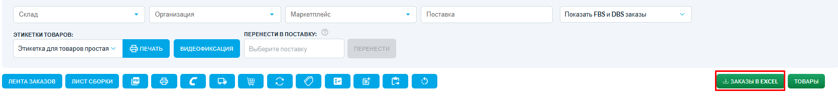 После загрузки этикеток сообщение о необходимости их загрузки исчезнет. В списке заказов с фильтром «Без этикетки» не останется ни одного заказа. Теперь можно скачать ленту заказов или лист сборки.
