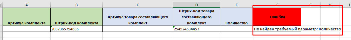 Однако при загрузке комплектов через Excel-файл действуют иные правила: