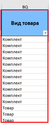 Откройте файл и найдите столбец Вид товара. В этом столбце укажите нужный тип товара — Товар. При необходимости таким же способом можно изменить тип и в обратную сторону — с Товара на Комплект.