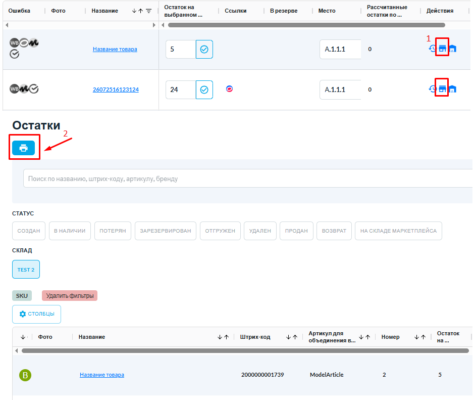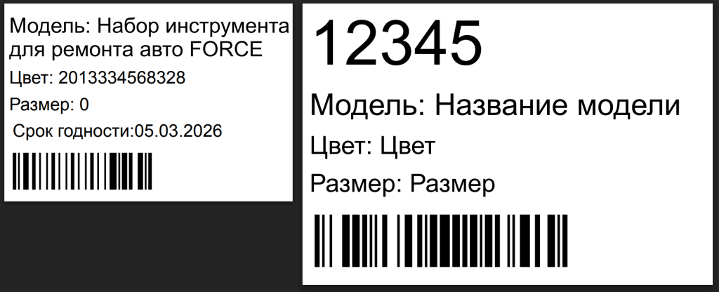 Для этого добавьте шаблон «Этикетка хранения товара» в разделе Настройки → Этикетки по методике, описанной в статье о работе с этикетками.