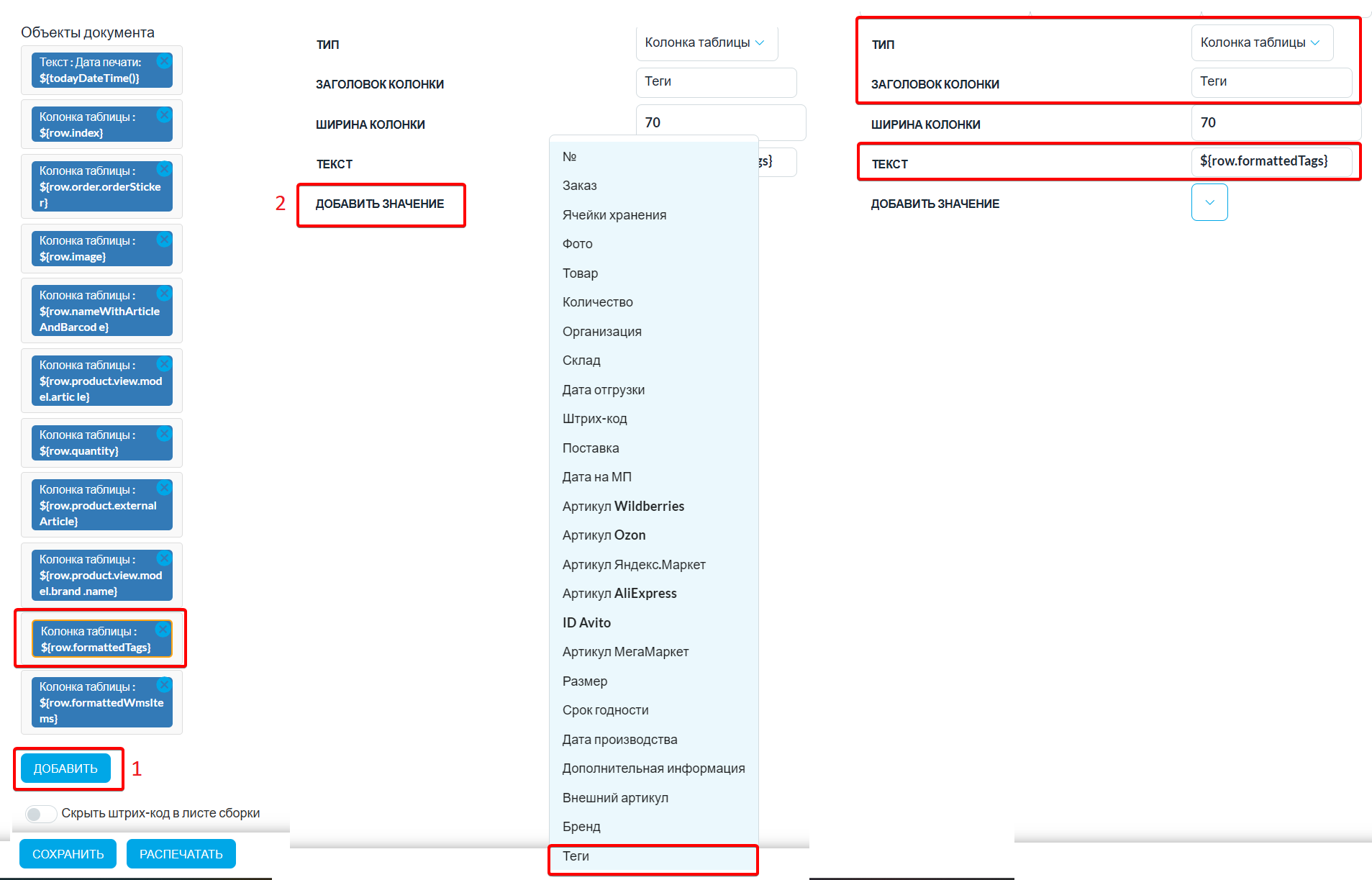 Теперь в Листе сборки FBS появится отдельная колонка с тегами товаров. Если у товара теги не заданы, колонка останется пустой.