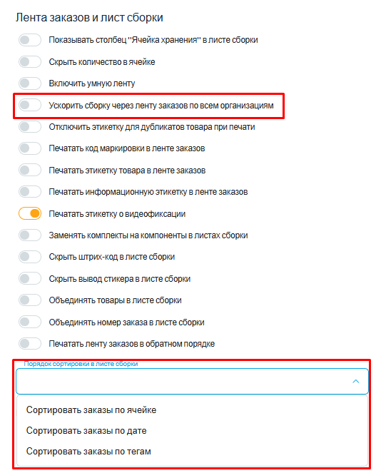 ВверхПри выборе сортировки По тегам заказы в Листе сборки группируются по тегам товаров.