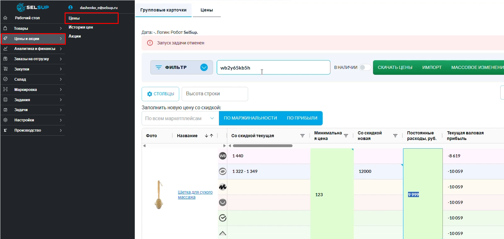 вы указываете нужную цену и нажимаете «Сохранить» — SelSup автоматически устанавливает её для каждого товара в группе.