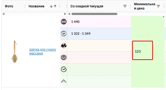 Если в группе у товаров указаны разные минимальные цены, SelSup автоматически подтягивает наименьшее значение.
