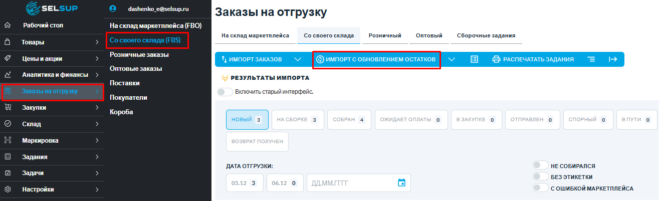 Перейдите в раздел «Заказы на отгрузку» → «Со своего склада (ФБС)».