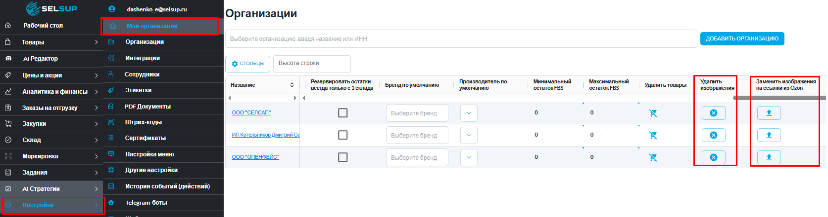 ВверхРедактирование и удаление фотографий доступно только когда вы их загрузите в SelSup. Если у вас показывается кнопка "Загрузить фото в SelSup" - значит, фотографии показываются ссылками и вы не можете их редактировать. Сначала необходимо загрузить фото в SelSup.